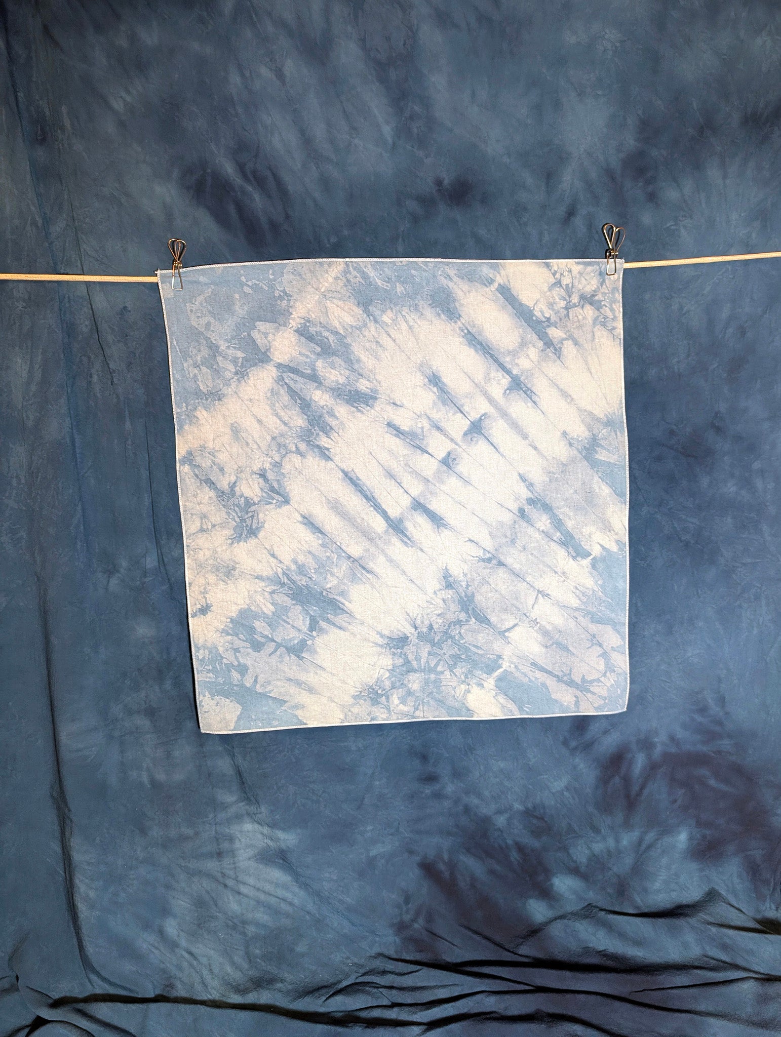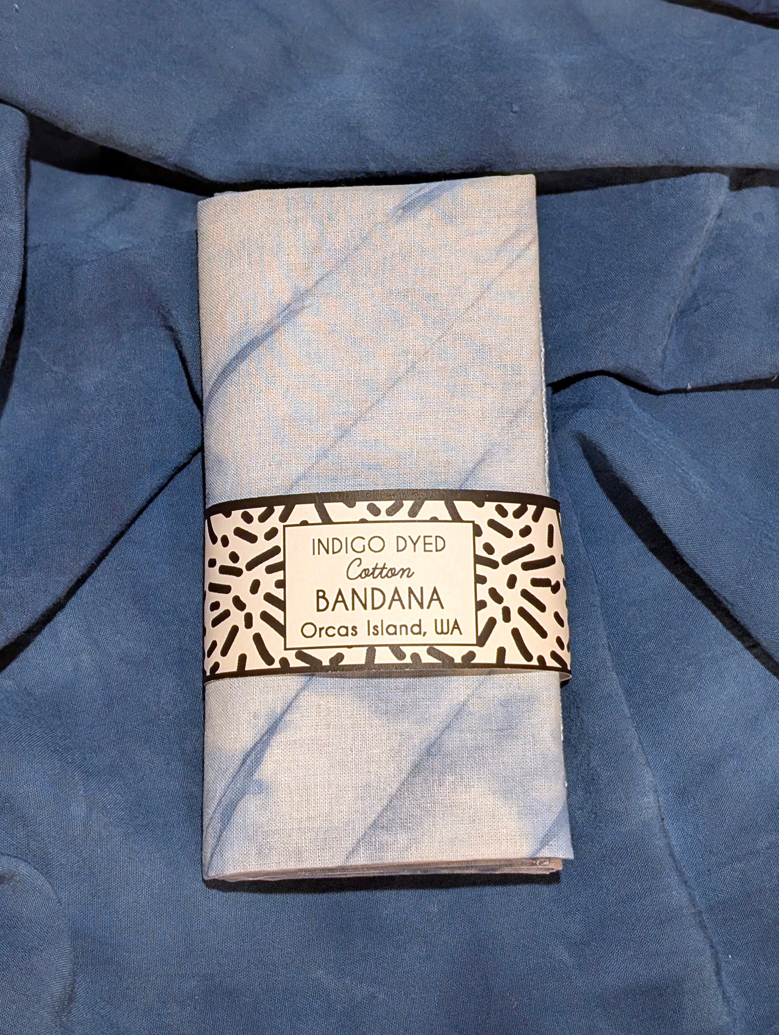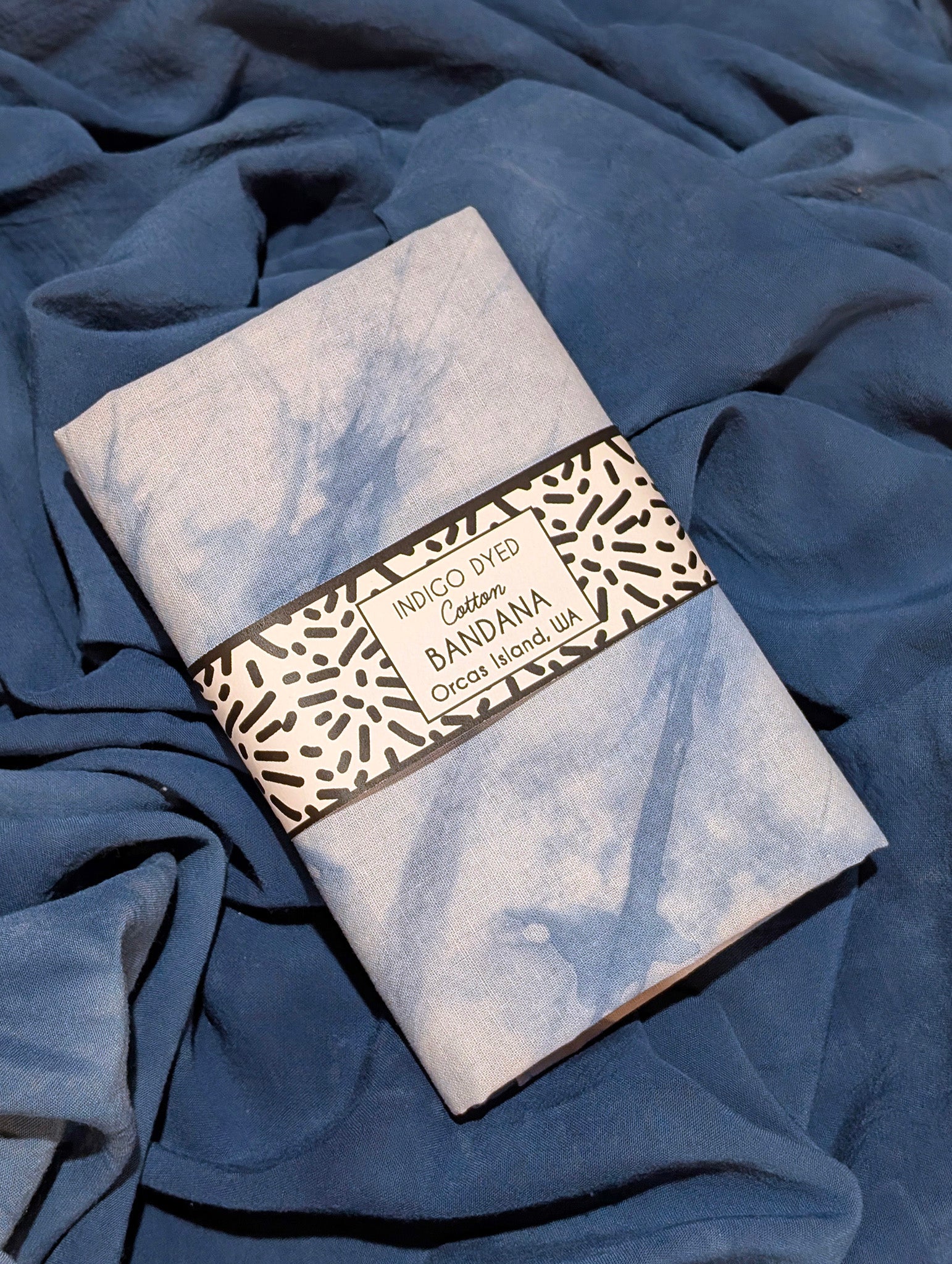 Hand-dyed by Natalie Menacho on Orcas Island, Washington using a "Sugar Vat" consisting of organic indigo, fructose, and slaked lime. These are all-natural inputs and the rinse water safely finds it's way into my yard. I've been growing indigo since 2024. Some of the organic indigo used to dye this item was grown on-island!