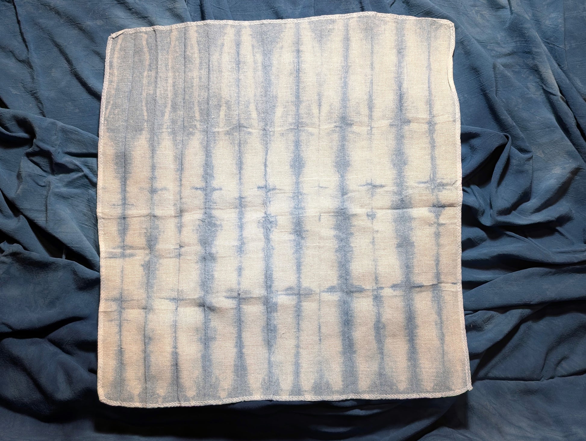Hand-dyed by Natalie Menacho on Orcas Island, Washington using a "Sugar Vat" consisting of organic indigo, fructose, and slaked lime. These are all-natural inputs and the rinse water safely finds it's way into my yard. I've been growing indigo since 2024. Some of the organic indigo used to dye this item was grown on-island!